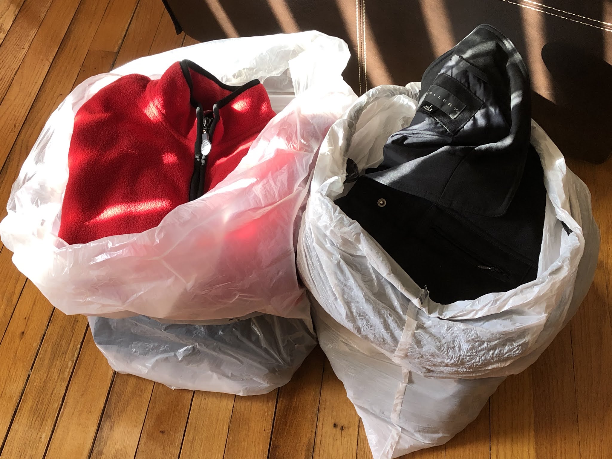 Winter clothing donated to a local shelter. / Ropa invernal donada a un